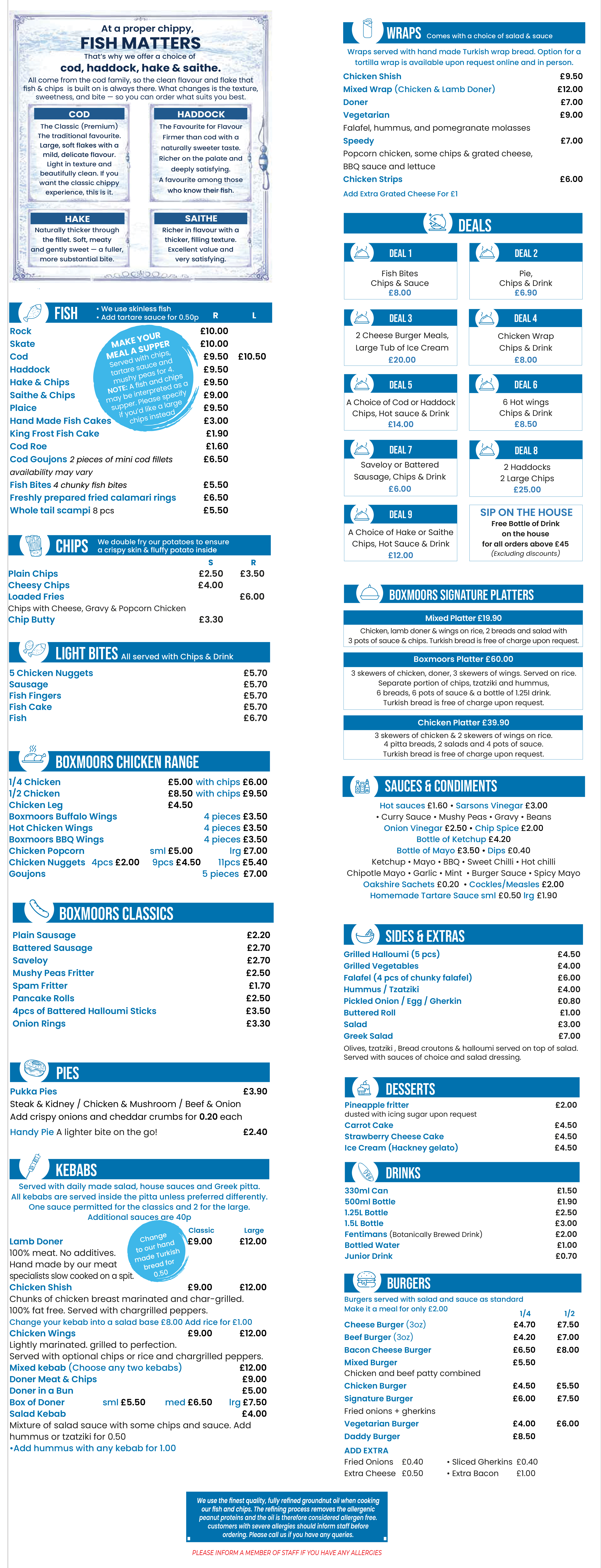 4 bits of fish, 2 portions of large chips and 4 pots of choice